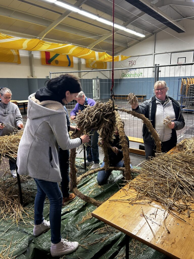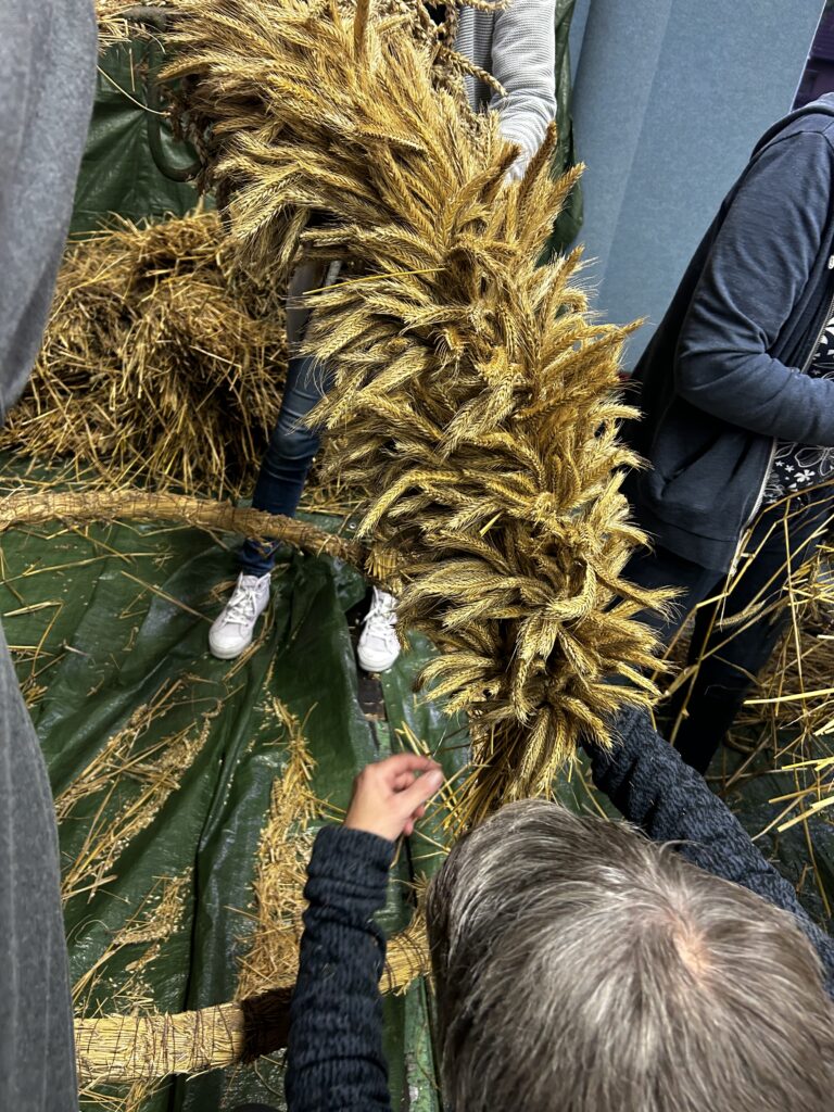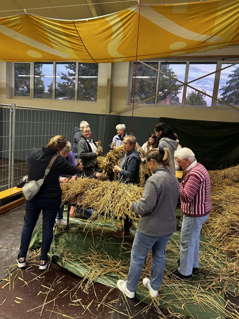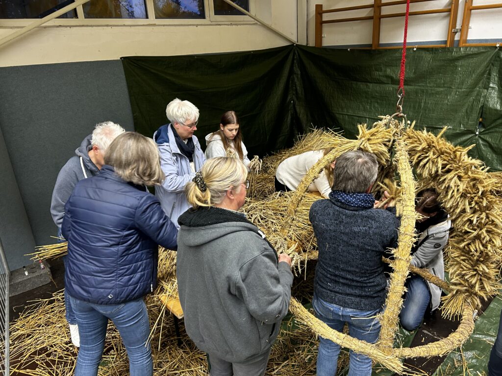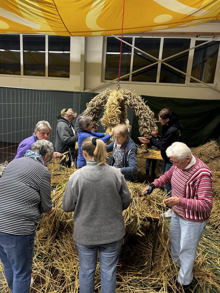 Am Freitag stand das traditionelle Erntekrone binden an. Rund 30 Leute kamen zusammen, um die schöne Krone zu binden. Bei netten Gesprächen, Kaltgetränken und ein bisschen Fingerfertigkeit wurde daraus ein richtig gemütlicher Abend.