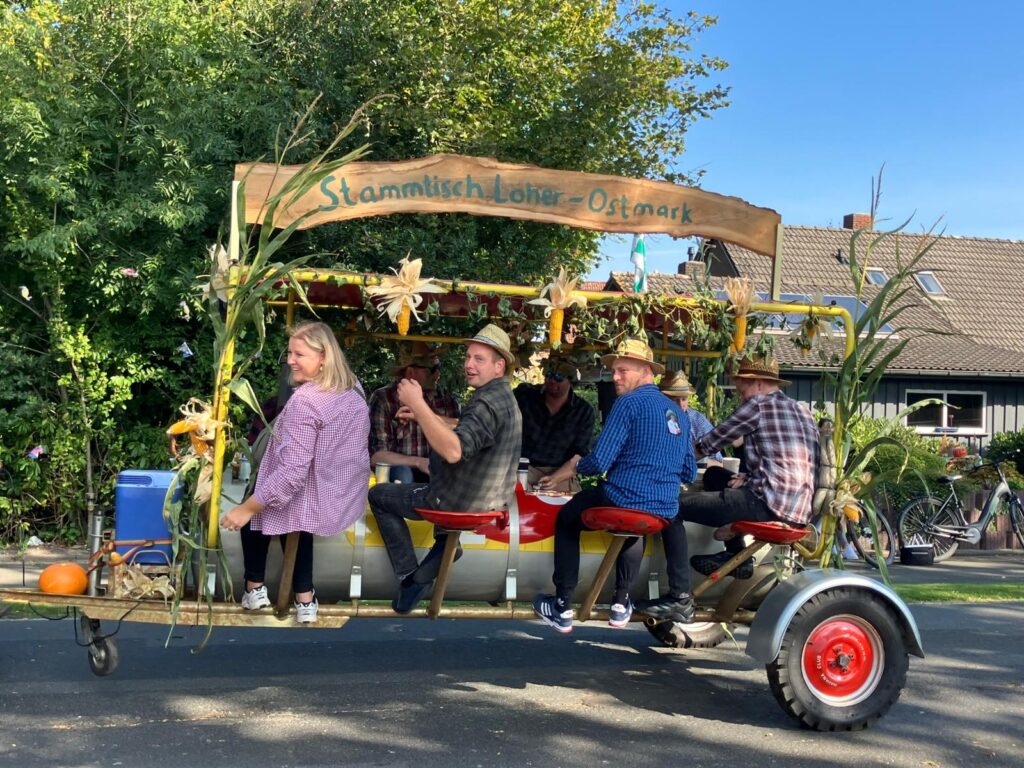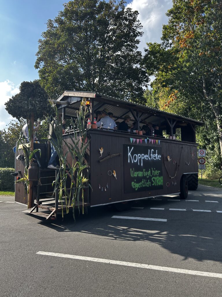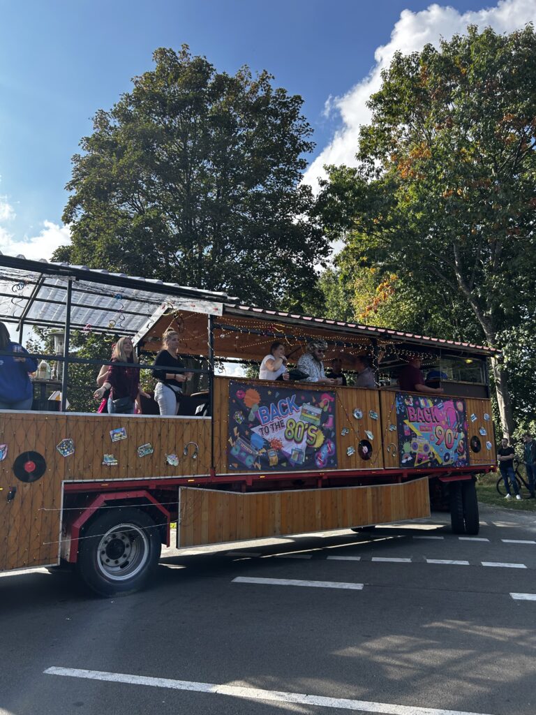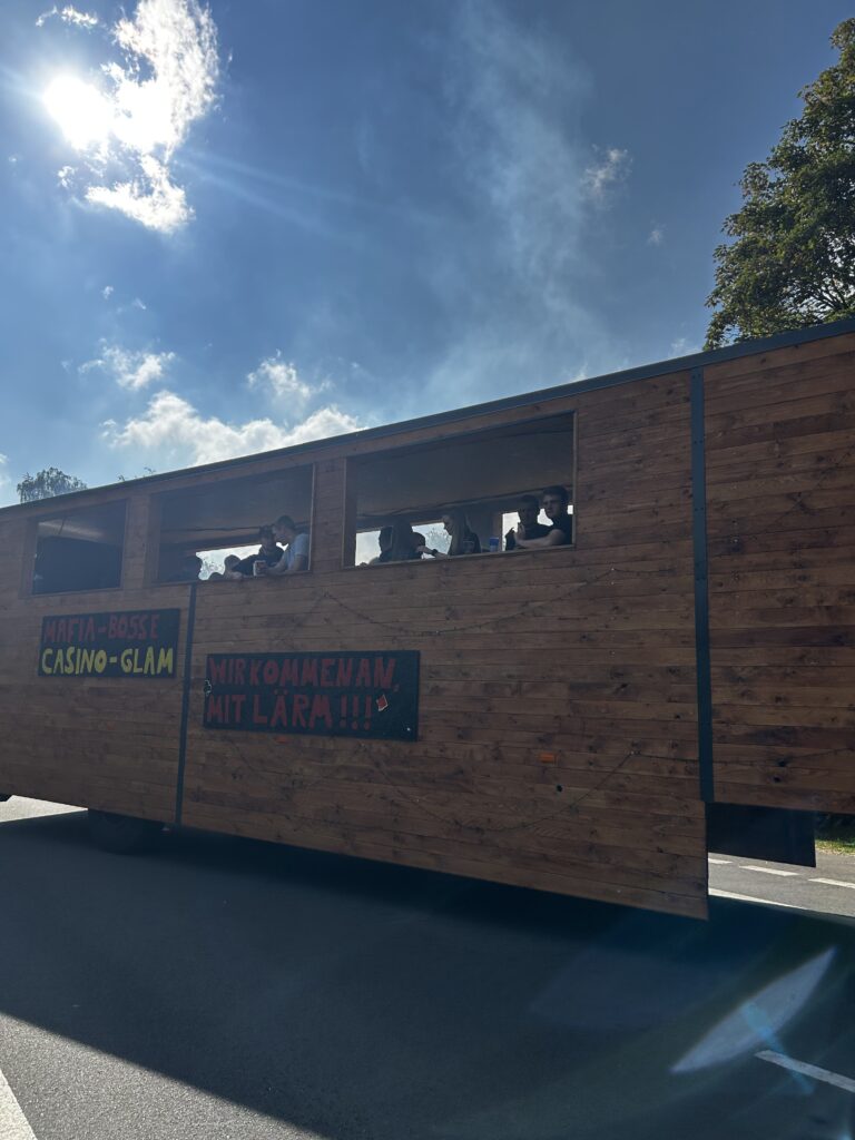 Der Sonntag war wie immer der große Höhepunkt! 15 festlich geschmückte Wagen rollten durch unser Dorf – jeder mit viel Liebe zum Detail gestaltet. Die Mottos sorgten für so manchen Lacher am Straßenrand: