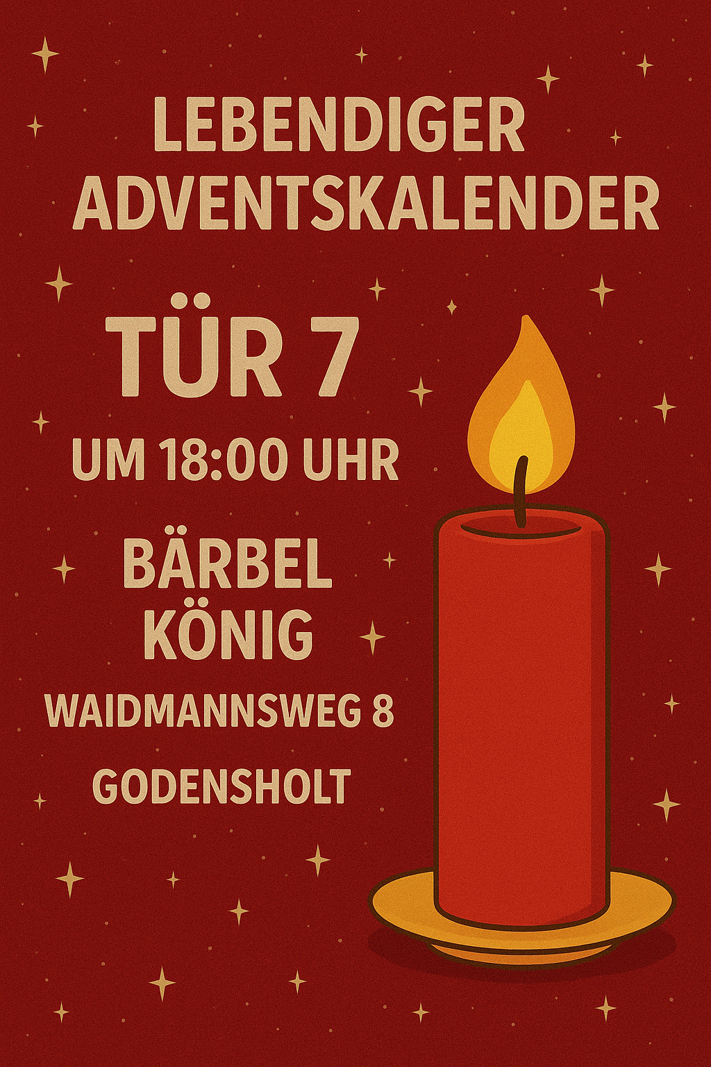 Der Advent steht vor der Tür – Zeit für Lichter, Musik und Begegnungen im Dorf! Auch in diesem Jahr möchten wir gemeinsam die Vorfreude teilen. Wir freuen uns auf dich! ✨ Ort Boßelverein GodensholtDannenkamp 826689 Godensholt